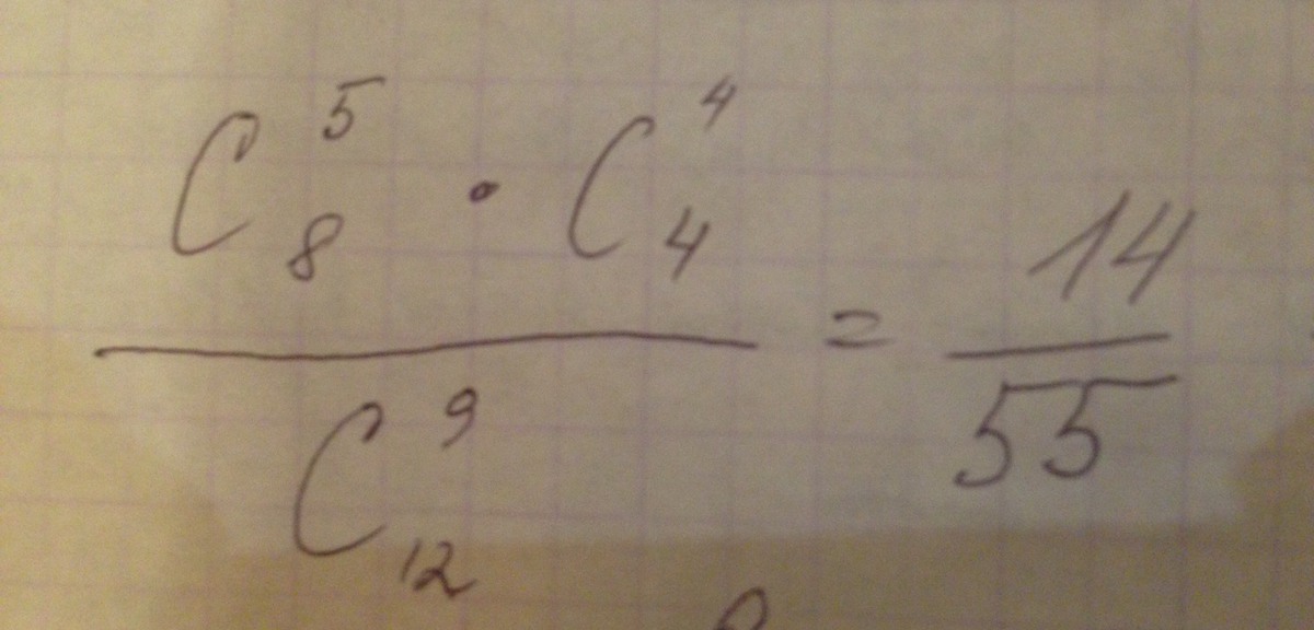 Помогите с вероятностью, ответ получается 14/55, но как он получился из формулы, помогите разобраться пожалуйста!