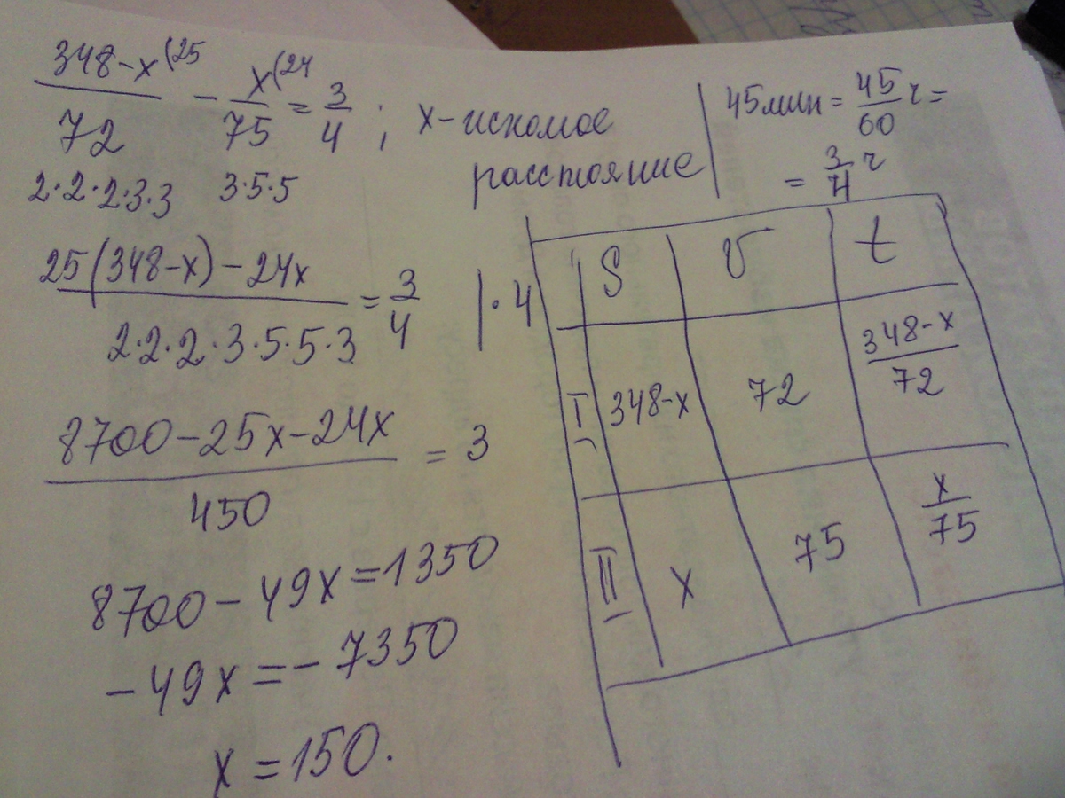 Через 45 мин вышел поезд из В в А со скоростью 75 км в час . Расстояние между А и В 348 км . На каком расстоянии от В поезда встретятся?