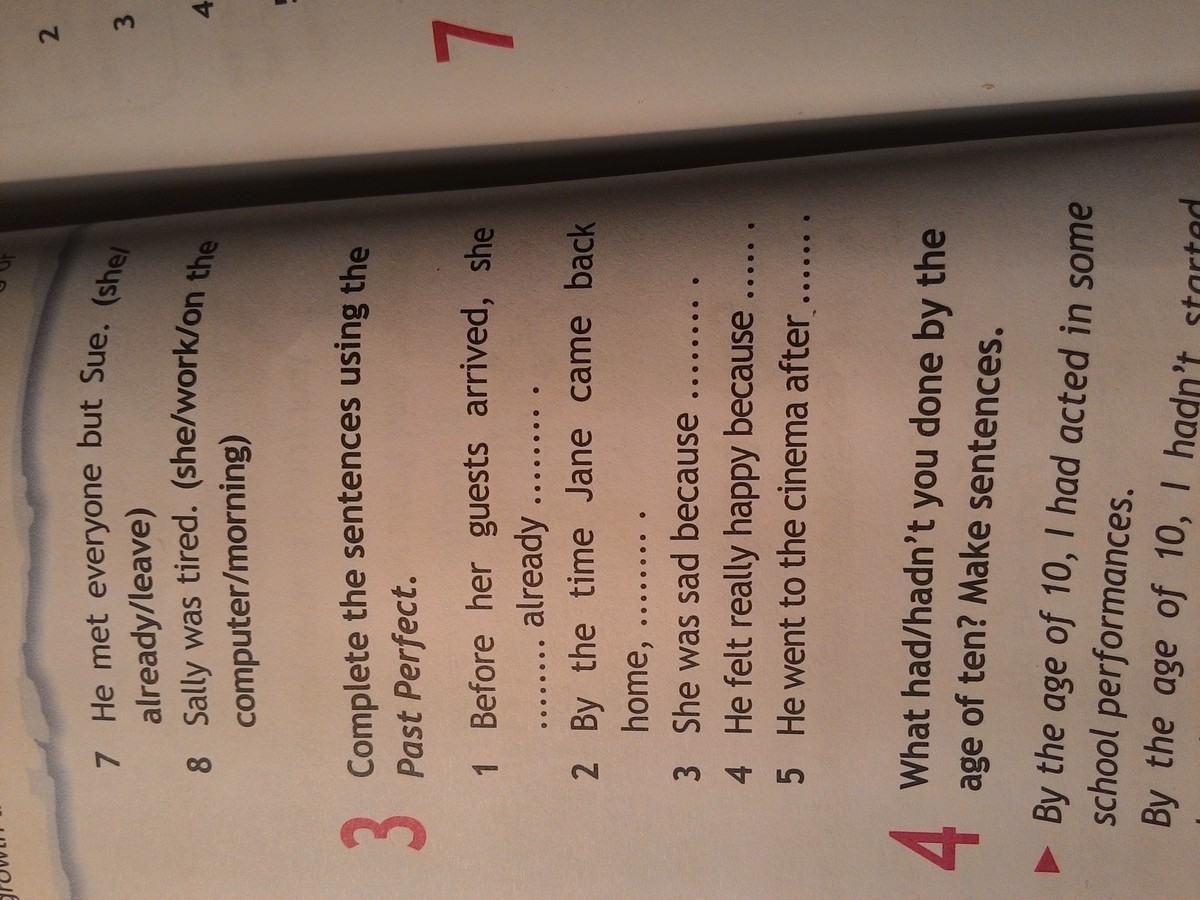2) By the time Jane came back home, her brother had helped her with cleaning.