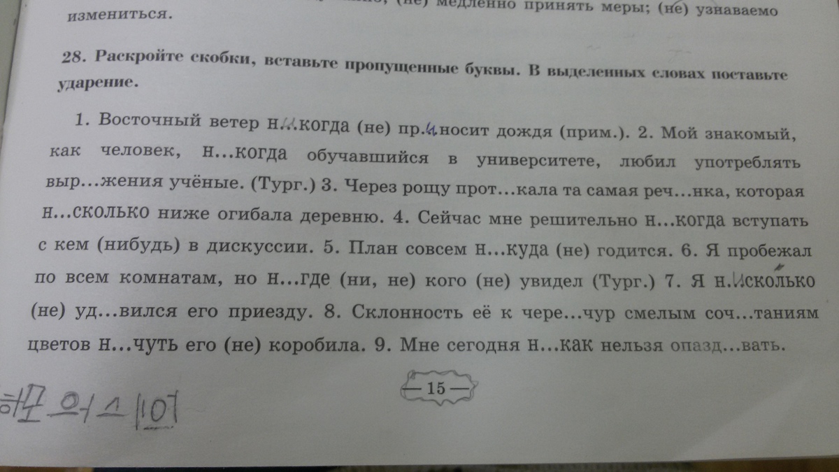 Никогда, не приносит, некогда обучавшийся,выражения, протекала реченька, несколько ниже, некогда вступать с кем-нибудь в дискуссии, никуда не годится, нигде никого не увидел, нисколько не удивился, чересчур, сочетаниям, ничуть его не коробила, никак нельзя опаздывать.