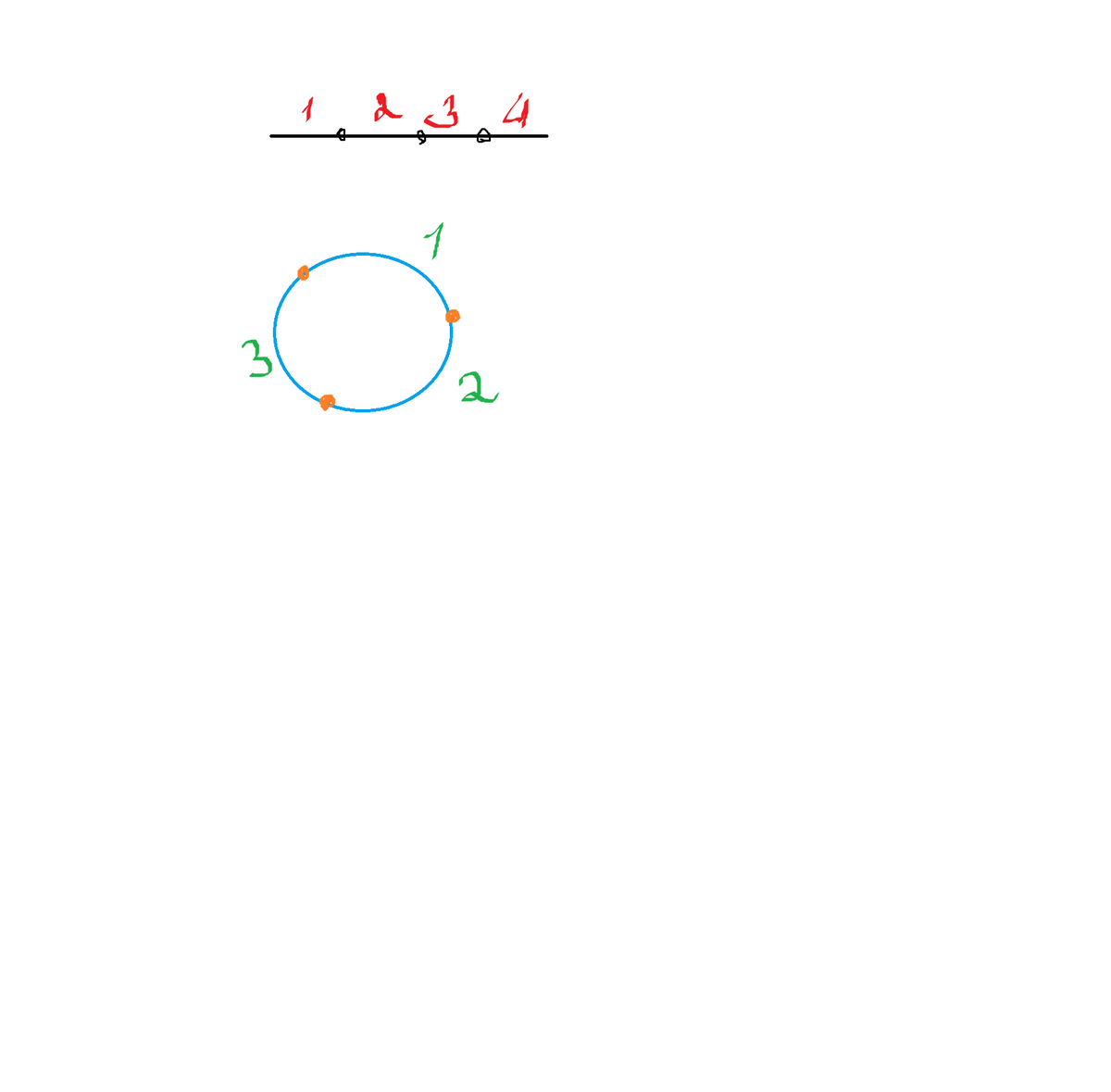 Маша начертила отрезок и отметила на нем три точки между концами отрезка. Катя начертила окружность и отметила на ней тоже три точки. На сколько частей разделился отрезок и на сколько-окружность?
