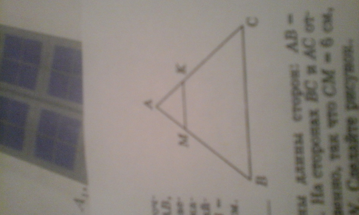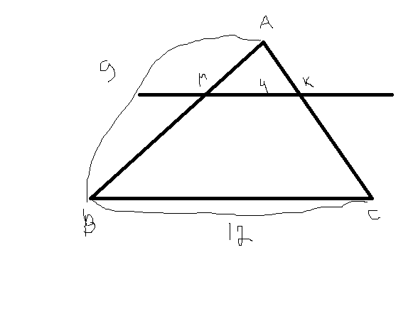 В треугольнике АВС через точку М,лежащую на стороне АВ,параллельно стороне ВС проведена прямая,которая пересекает сторону АС в точке К.Найдите отрезок