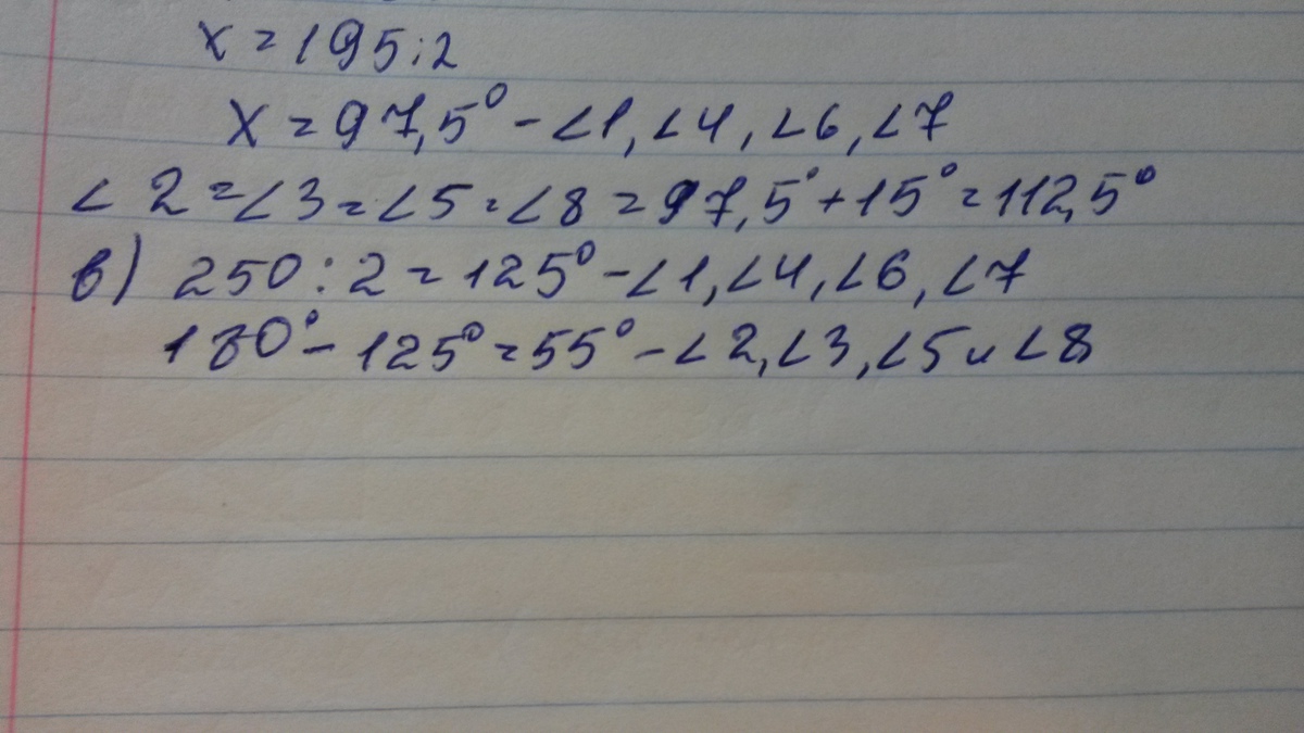 прямых равна 270 градусов; б)один из внутренних односторонни углов на 15 градусов больше другого;в) сумма внутренних накрест лежащих углов равна 250 градусов.