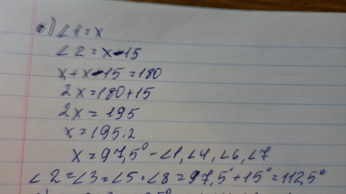 Найдите градусную меру каждогоиз углов, образованных при пересечении двух параллельных прямых третьей прямой, если: а)сумма двух соответственных углов