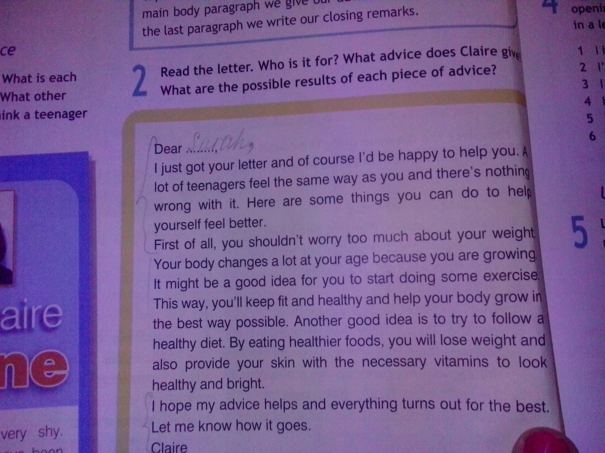 Я только что получила твое письмо, и я, конечно, буду счастлива помочь тебе. Много подростков чувствуют себя так же, как и ты, и в этом нет ничего плохого. Вот несколько советов для тебя, которые могут улучшить твое состояние.