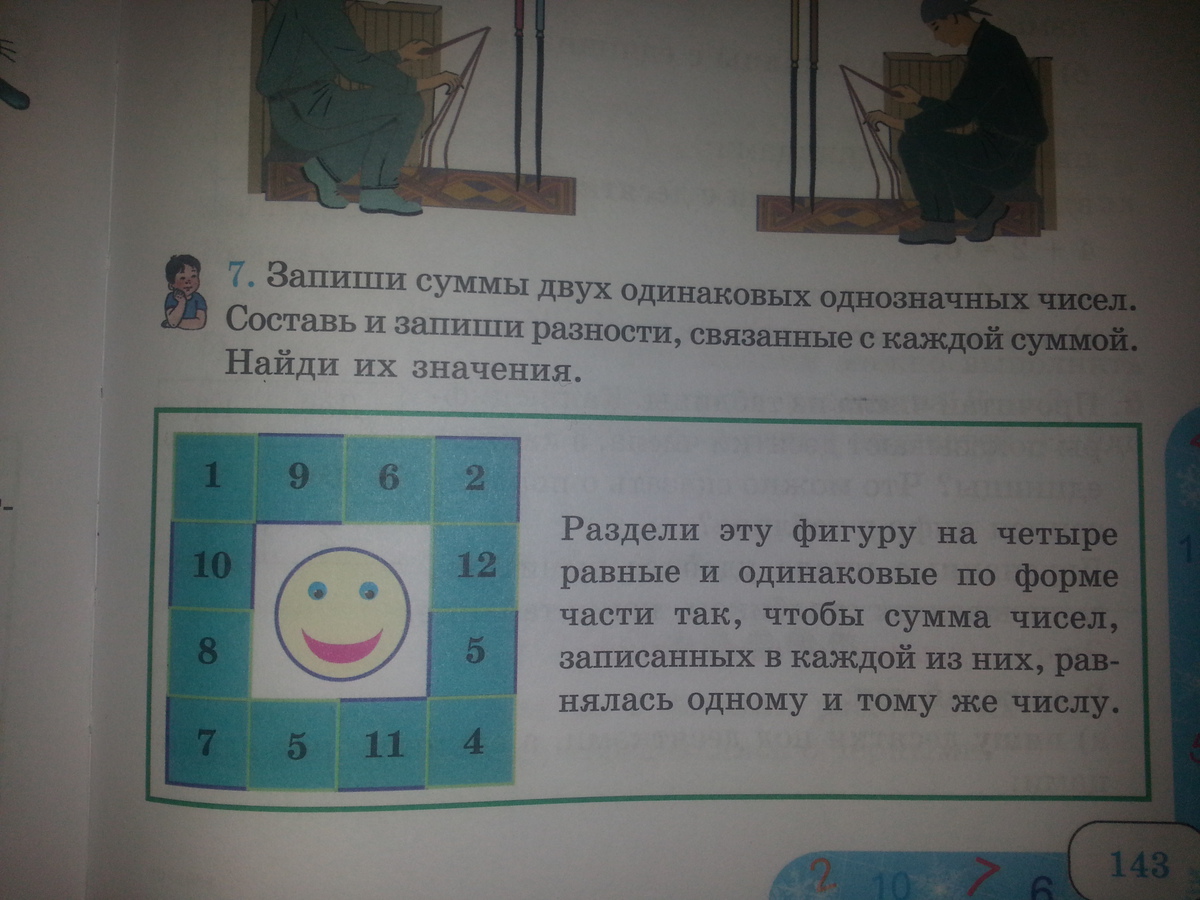 представь что это просто квадрат. раздели его на 4 части крест на крест. один квадратик - это частичка смайлика. 3 другие это цифры. в каждом квадратике сумма цыфр состевляет 20