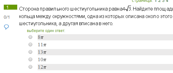 Площадь кольца: S=π(R²-r²)=π((4√3)²-6²)=12π кв. ед.