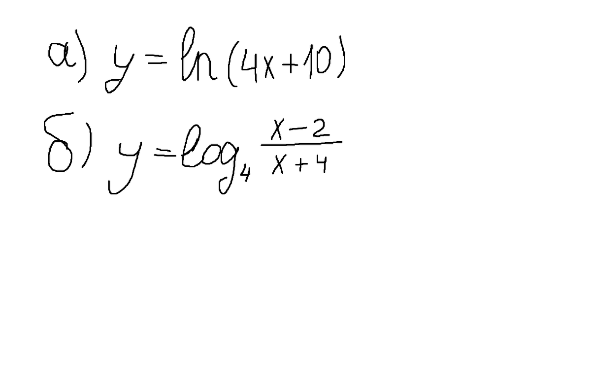 2) y = log4 [(x - 2)/(x + 4)]