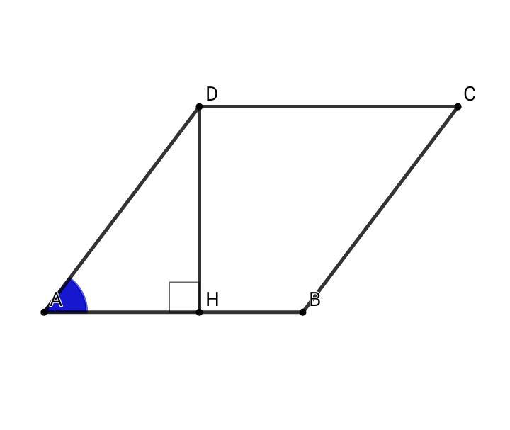В прямоугольном ΔADH: sin∠A = DH/AD = 3/4 , DH = 9