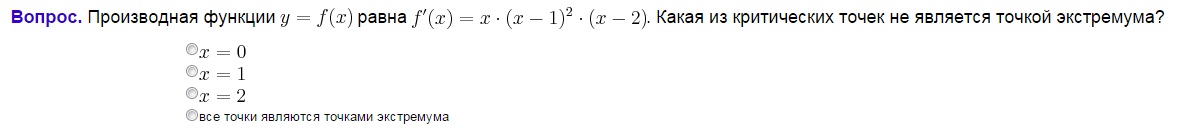 Т.к. корень x-1 корень кратности два и при переходе через него производная не меняет знак,следовательно функция в сией точке не имеет экстремум