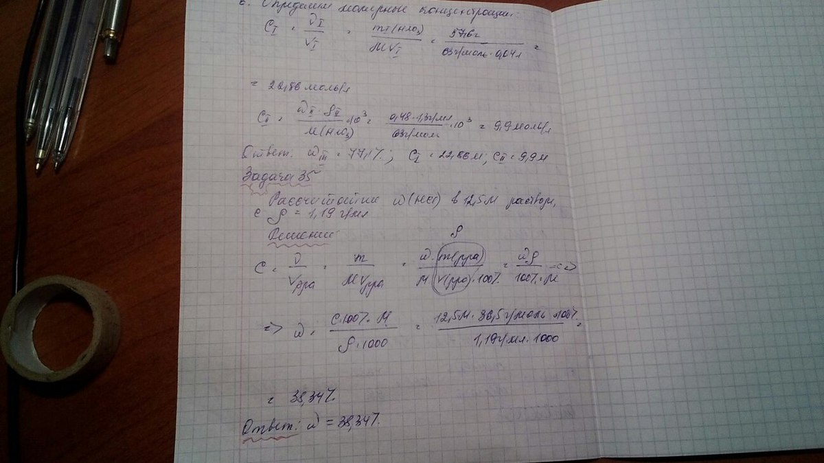 №2. Рассчитайте массовую долю HCl в растворе соляной кислоты с концентрацией 12,5 моль/л. Плотность раствора равна 1,19 г/мл