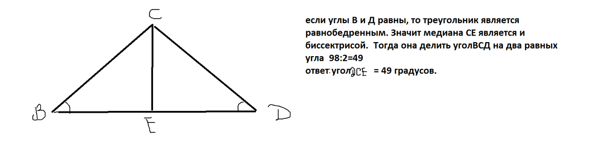 Треугольник всд-равнобедр.(тк <в=<д, а в равнобедр. треуг. углы при осн. равны)
