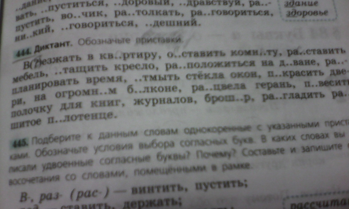 Въезжать в квартиру,обставить комнату,расставить мебель,притащить (затащить) кресло,расположиться на диване,распланировать время,отмыть стекла,покрасить двери,на огромном балконе,расцвела герань,повесить полочку, брошюр ,разгладить расшитое полотенце.