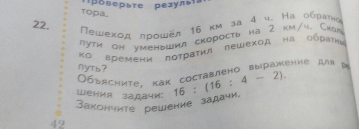 1) 16:4=4 (км/ч)-скорость пешехода туда