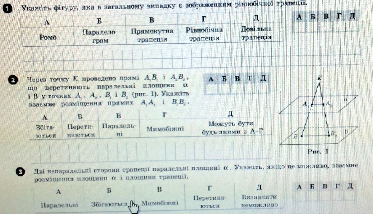 вообще-то изображением равнобедренной трапеции есть произвольная трапеция-в 1,а во 2-В,3-СОГЛАСНА