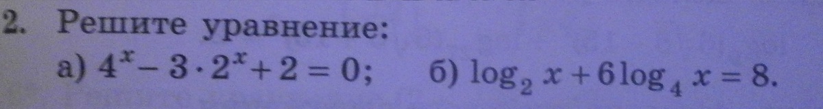 Ответ 1) 4^x-3*2^x+2=0. 2^x(2^x-3)=-2. Теперь преобразуем 2^х=-2. Х =2^(-2). Х=-4. 2^x=-1. X=1/2.