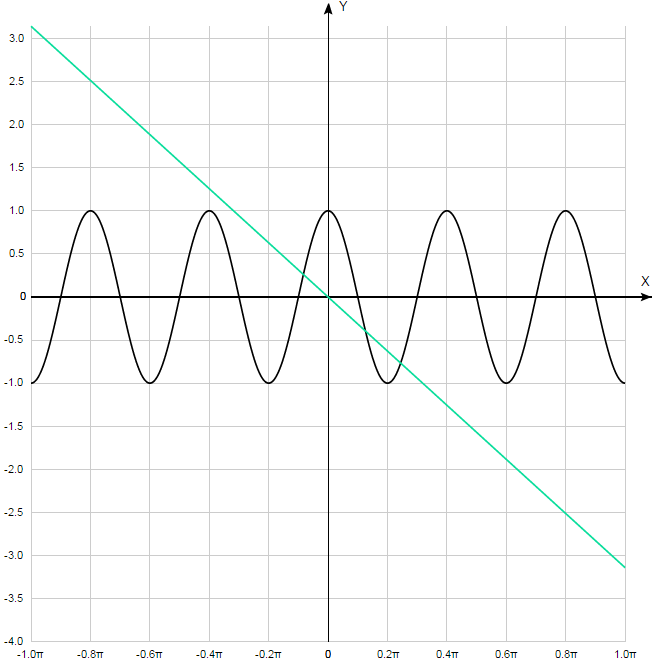 рассмотрим функции f(x)=cos(5x) и g(x)=-x, построив, видим что уравнение имеет 3 корней.