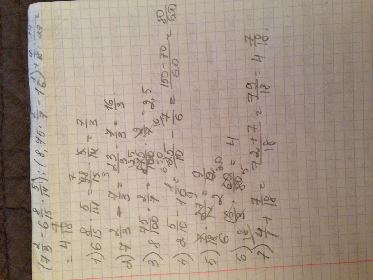 (7 целых 2/3-6 целых 8/15*5/14):(8.75*2/7-1целая 1/6)+7/18 :14/27