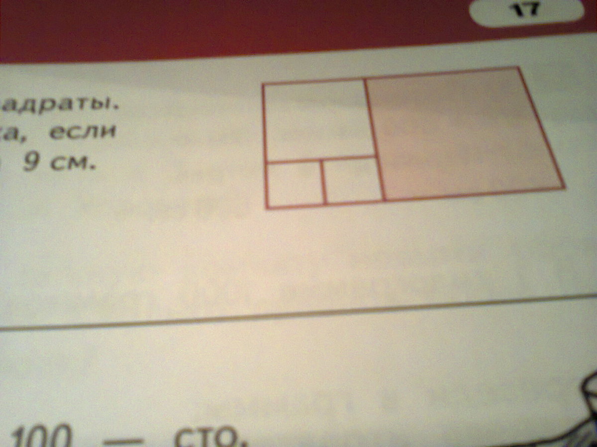 Помогите пожалуйста! Прямоугольник разбит на квадраты. Найди периметр прямоугольника, если сторона закрашенного квадрата 9 см