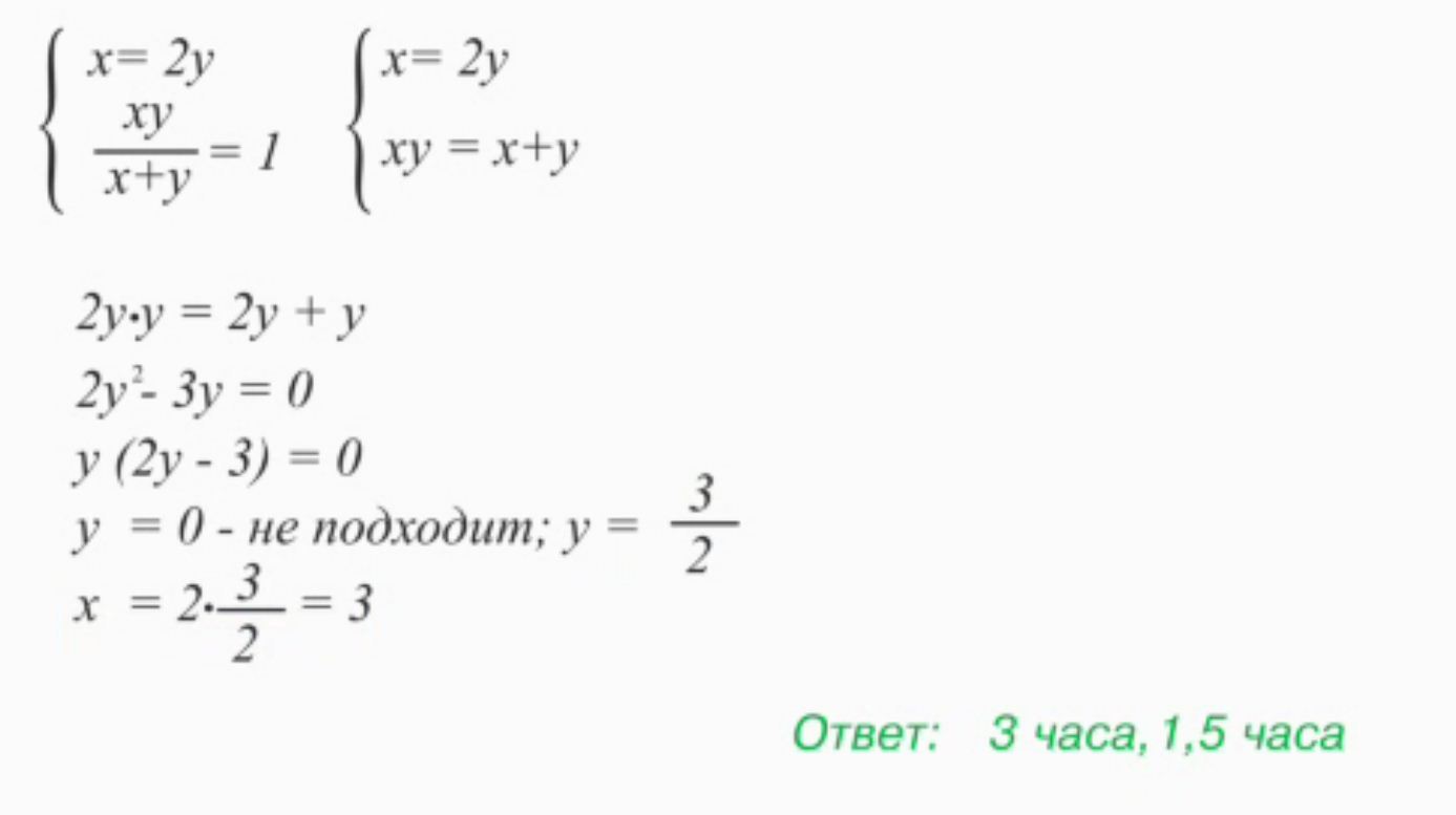 Чан наполняется двумя кранами при совместной работе за 1 ч. Наполнение чана только через 1 кран длится вдвое дольше, чем через второй кран. За какой промежуток времени каждый кран отдельно может наполнить чан? пожалуйстаааа решите подробнооооо((((( =**********