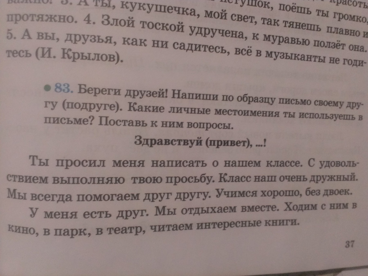 плиз помогите написать письмо использовая личные местоимения письме. поставь к ним вопросы. для друга и подруге. 3 класс