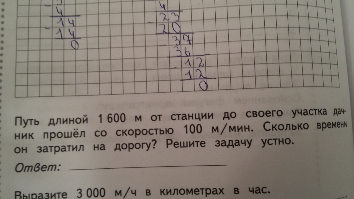 Путь длинной 1600 м от станции до своего участка дачник прошел со скоростью 100м/мин. Сколько времени он затратил на дорогу?