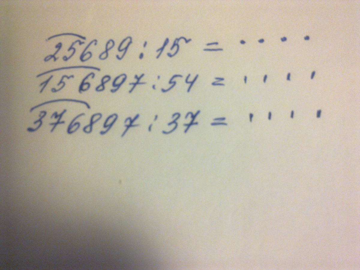 в каждом из данных заданий на деление столбиком покажи с помощью дуги первое неполное делимое, а с помощью точек-сколько цифр в неполном частном. 25689:15