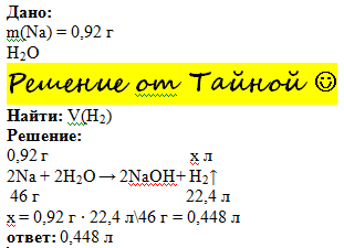 натрий массой 0 92 г полностью прореагировал с водой. Объем (н.у.) газа, выделившегося в результате реакции, составил ? Л ( Запишите число с точностью до тысячных)