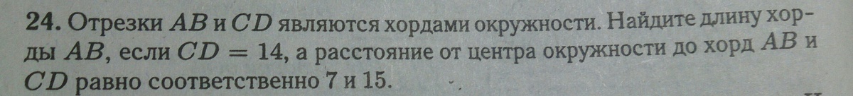 По теореме Пифагора АЕ^2=ОА^2-ОЕ^2=274-49=225, значит АЕ=15, тогда АВ=30.