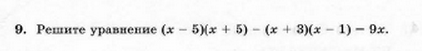 9) (x-5)(x+5)-(x+3)(x-1)-9x=0 (ну, скорее всего =0, иначе это вообще не уравнение...)