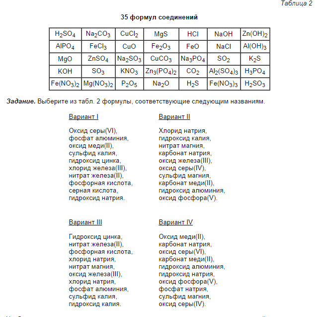 4-ая строчка: гидроксид калия, оксид серы (VI), нитрат калия, фосфат цинка, оксид углерода (IV), сульфат алюминия, фосфорная кислота;