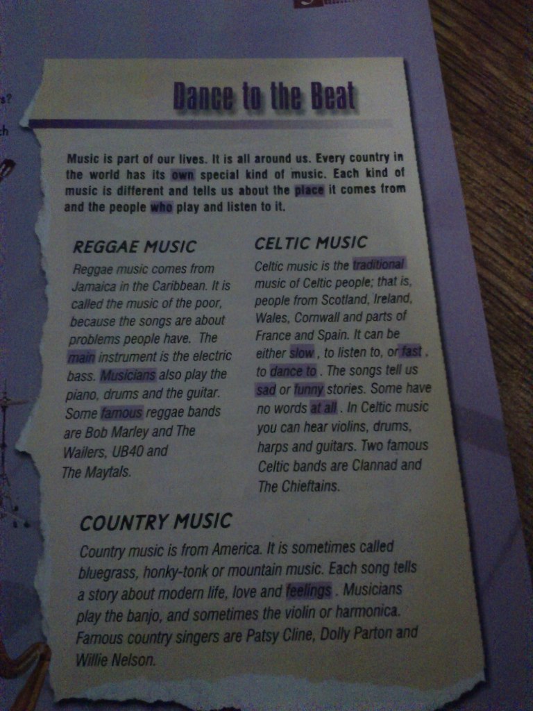 Музыка - это часть нашей жизни. Она вокруг нас. У каждой страны мира есть своя специфическая музыка. Все виды музыки различаются и рассказывают нам о местах, откуда они пришли и людях, кто это музыку играет и слушает.