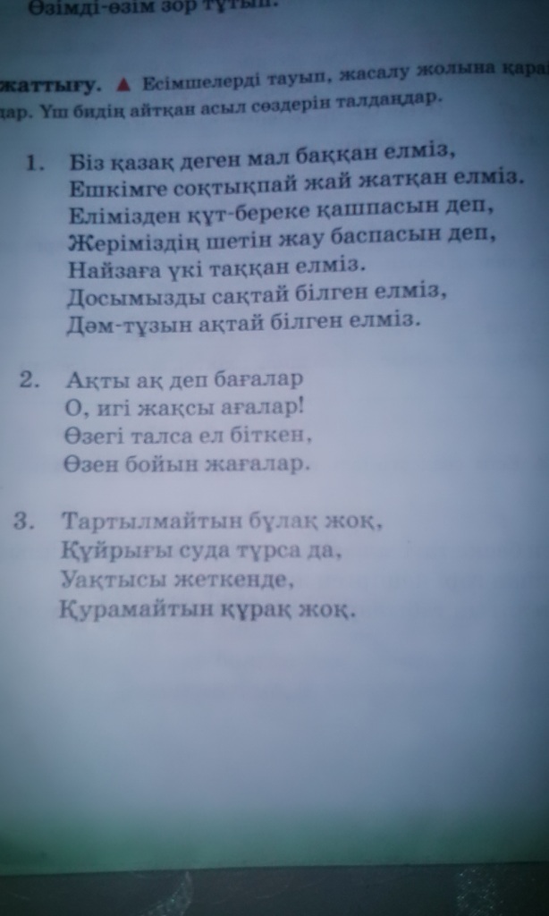 Енді осы сөздердің түбірін, жұрнағын және жалғауын табасын.