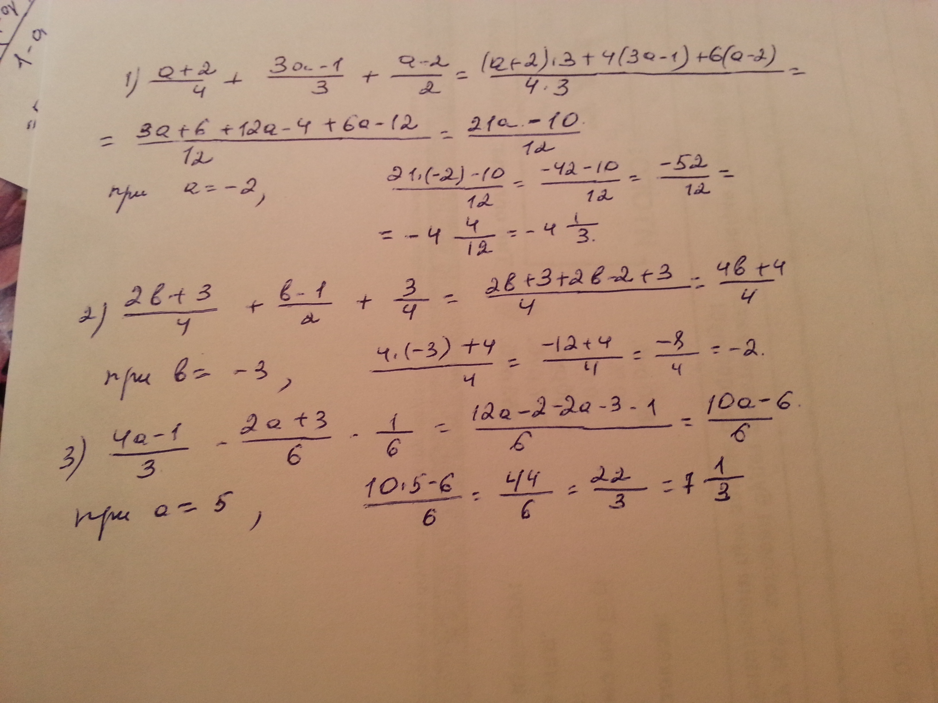 1)а+2/4+3а-1/3+а-2/2 при а=-2;