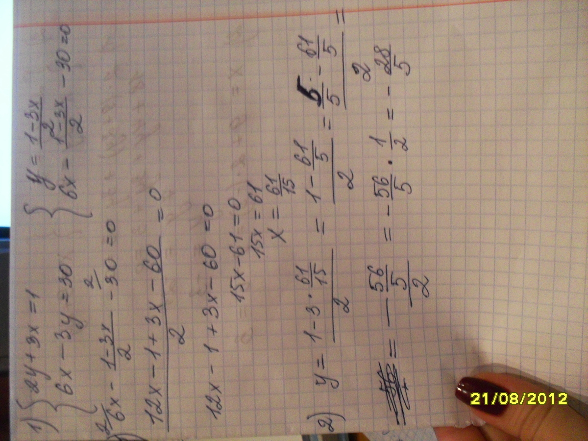 6х-3у=30-из второго вычтем первое