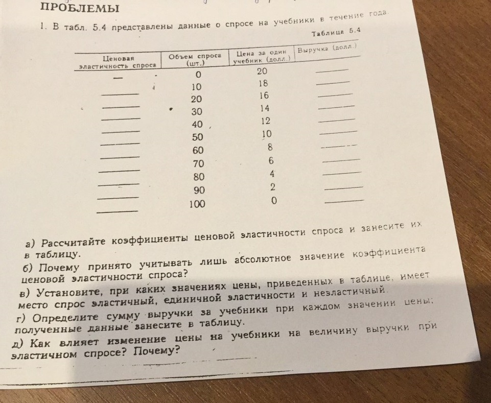 д) как влияет изменение цены на учебники на величину выручки при эластичном спросе?Почему?