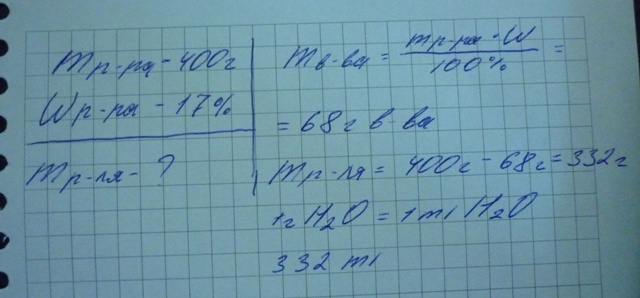 Потребуется 332 мл воды для получения вышеупомянутого раствора.