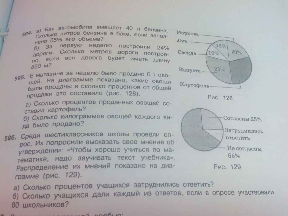 весь круг 100%, 25%+65%=90%, 100%-90%=10% затруднились. согласных- 80*25:100=20 учеников, 80*10:100=8 учеников затруднились. 80*65:100=52 ученика не согласны
