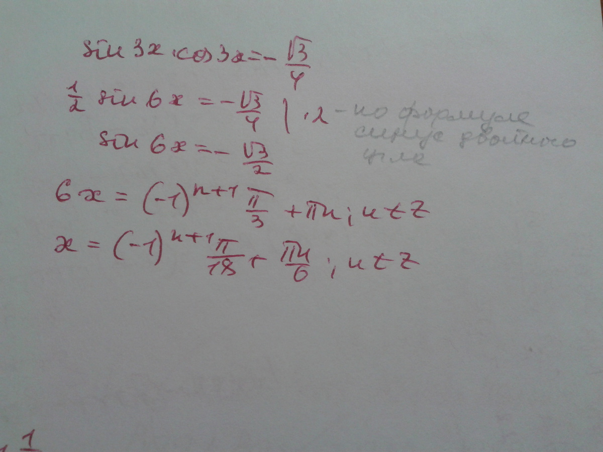 1/2*2*sin3x *cos3x =-√3/4