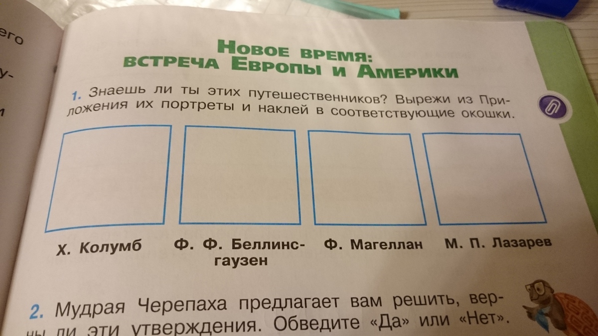 Знаешь ли ты этих путешественников? Вырежи из Приложения их портреты и наклей в соответствующие окошки
