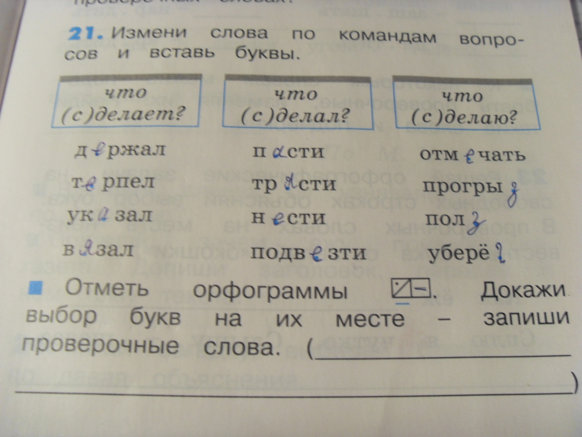 Пожалуйста помогите с заданием. Последний пункт "Отметьте орфограммы........запишите проверочные слова."Забыла что обозначает эта схема((( Спасибо