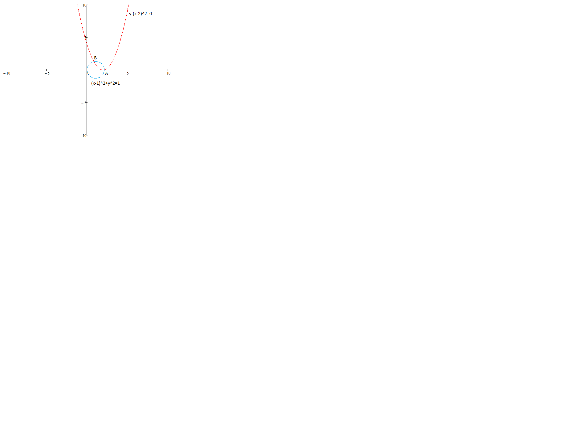 1) (x-1)^2+y^2=1 - окружность с центром C(1;0) и радиусом R=1