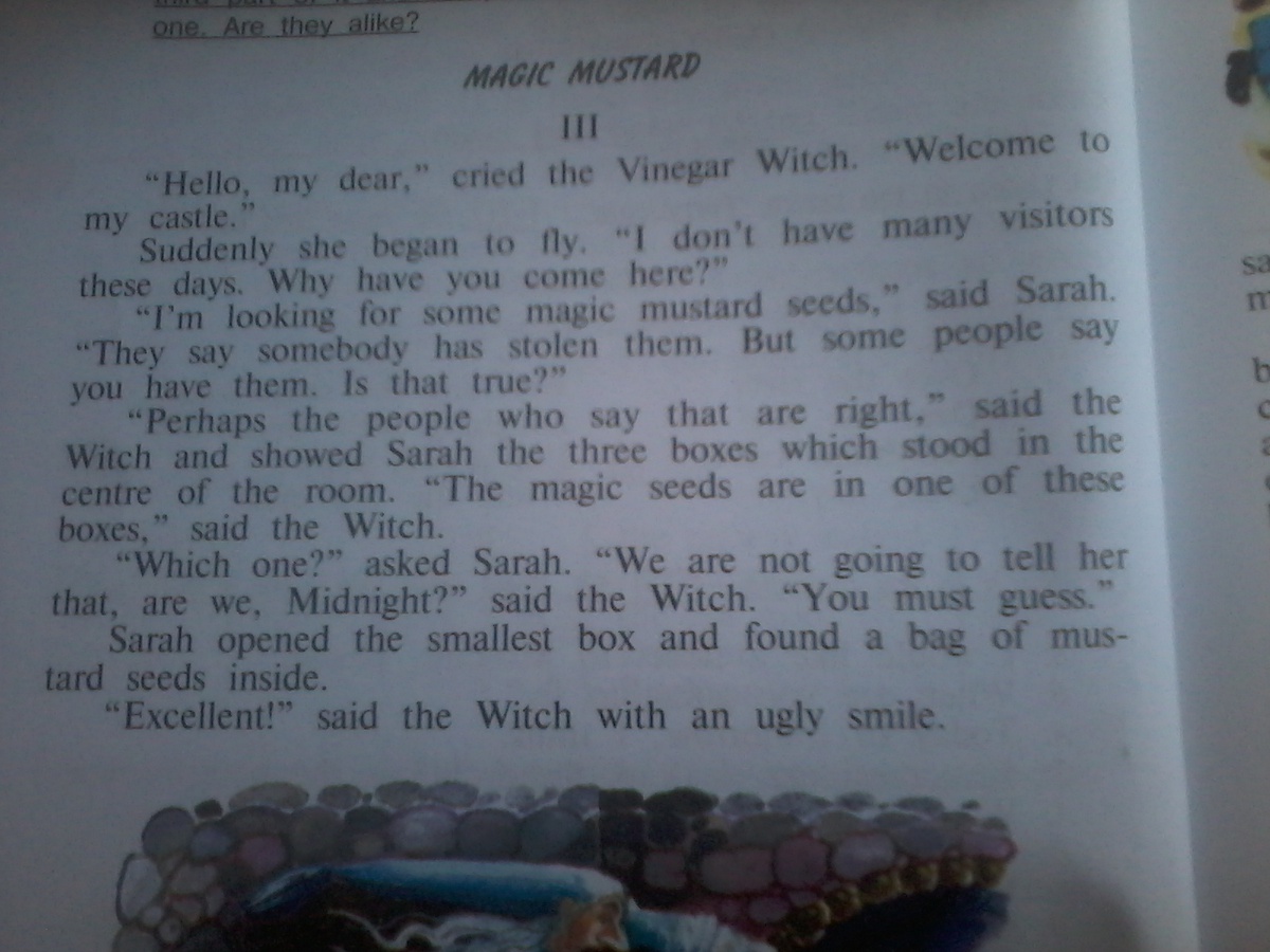 " Я ищу волшебные семена горчицы"сказала Сара.Они говорят, что кто-то украл их.Но некоторые люди говорят,что ни есть у тебя.Это правда?"