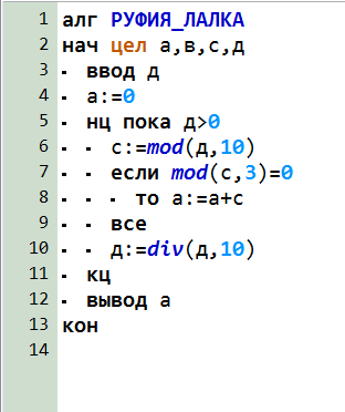 Найти сумму нечетных цифр числа делящихся на 3. Помогите пожалуйста! Нужно найти с помощью программы КУМИР. И с помощью команды "если"!!! Помогите!!!!