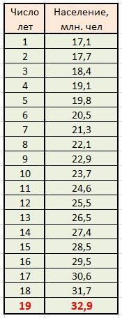 Население Нигера составляет 16.5 млн человек. Через сколько лет произойдет его удвоение, если нынешний естественный прирост - 3.7% в год - сохранится?