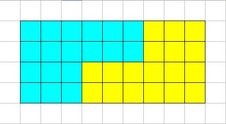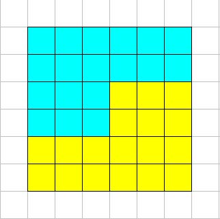 Прямоугольник размером 4 на 9 клеток разрежь на две одинаковые части и составь из них квадрат.