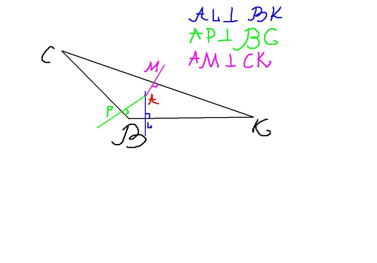 начертите тупоугольник отметьте внутри него точку А и проведите через эту точку прямые перпендикулярные сторонам этого треугольника или продолжениям его сторон