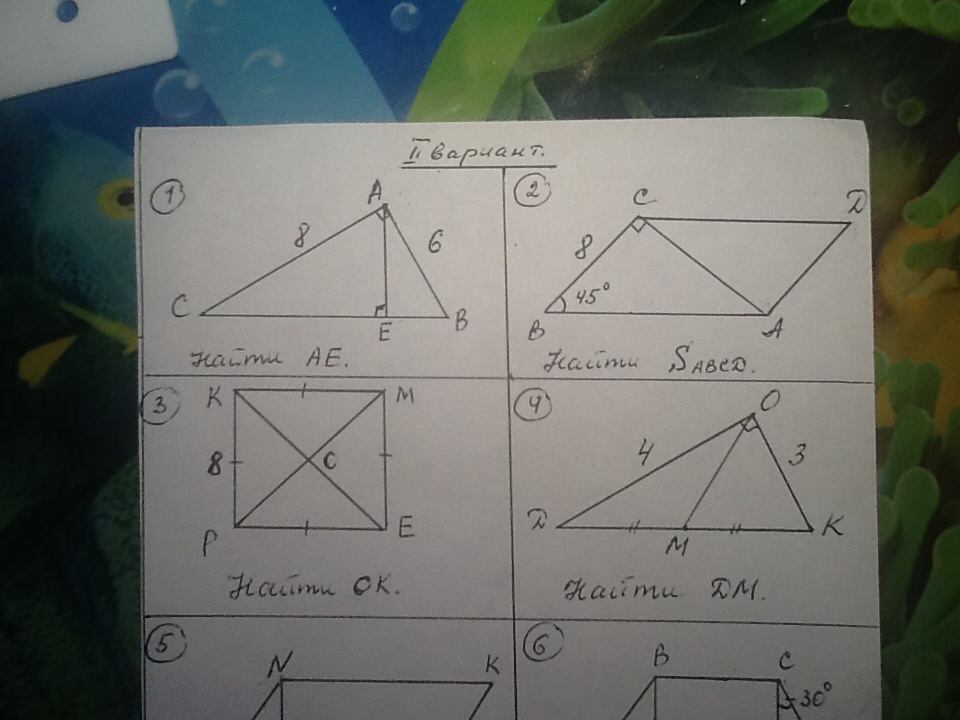 3. Квадрат. тр-к КРЕ прямоугольный значит по т. Пифагора КЕ=√8²+8²=√8²*2=8√2 точкой О КЕ делится пополом значит ОК=8√22=4√2