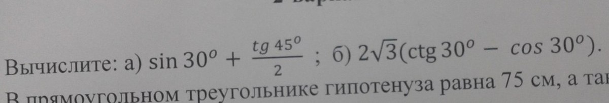 Решите, пожалуйста: sin30° + tg45°/2(дробь)