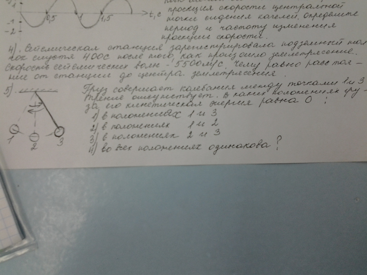 В момент 1 и 3 скорость груза равна 0, равна 0 и кинетическая энергия. Ответ 1